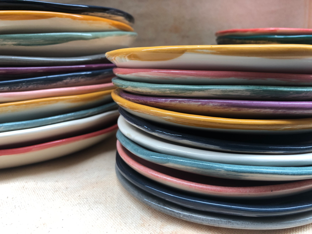 Este conjunto de platos se puede personalizar por encargo eligiendo así la combinación de colores, o incluso el número de piezas de cada conjunto.